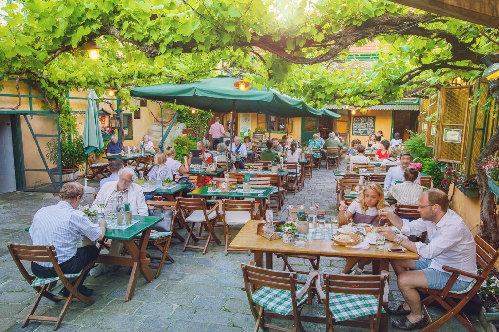 Das traditionelle Wiener Heurigenlokal Mayer am Pfarrplatz befindet sich in einem historischen Haus, in dem einst Ludwig van Beethoven lebte. Heute genießt man dort typische österreichische Spezialitäten und hauseigene Weine in gemütlicher Atmosphäre.